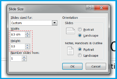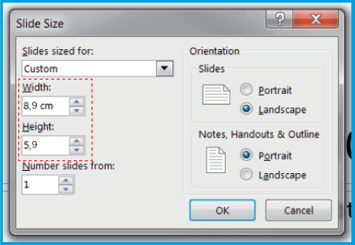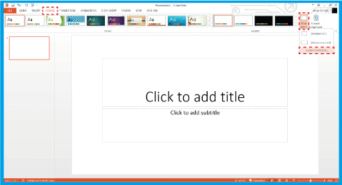1.1 .상단 바에서 디자인으로 이동한 다음 오른쪽에서 및 사용자 지정 슬라이드 크기로 이동합니다..