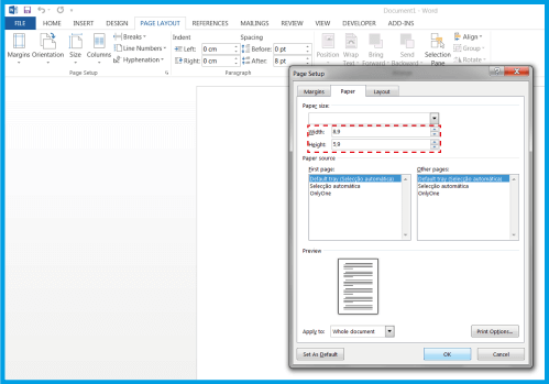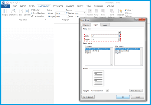 1.2 .열리는 상자에 문서의 치수를 입력하세요.