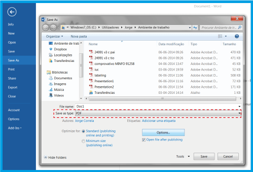 3.1 .문서를 저장하려면 파일 > 다른 이름으로 저장을 선택하세요. 파일 형식: PDF를 선택한 다음 저장 버튼을 선택하세요..